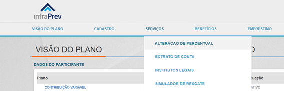 2. Clique em ‘Serviços’ e escolha ‘Alteração de Percentual’